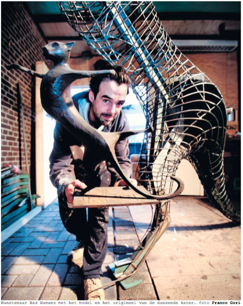 Let op de rotonde Elmpterweg-Wirosingel in Roermond medio januari volgend jaar, want rond die tijd wordt het nieuwe beeld van VV De Katers daar geplaatst. Kunstenaar Bas Hamans - de zoon van voorzitter Leon Hamans - is daar druk mee bezig. Het beeld van een dansende kater vormt een duurzaam geschenk aan de Neelder gemeenschap in het kader van het 6x11-jarig bestaansfeest van de carnavalsclub. Uiteraard viert de vereniging nog feest in een aantal weekeinden - waarvan komend weekeinde het eerste is (zie website) - maar dat zal bescheidener zijn dan bij eerdere jubilea. Voorzitter Leon Hamans legt uit: "We kiezen voor een wat bescheidener feest dan bij bijvoorbeeld het 4x11-jarig jubileum. We gaan geen sporthal afhuren of een hal bij Dennenmarken. Er komen geen artiesten zoals destijds de Mainzer Hofsanger. Alle festiviteiten vinden plaats in cafe-zaal De Ster in Maasniel. Te groot uitpakken vormt een financieel risico. We steken wel 15.000 euro van eigen geld en sponsoring in het nieuwe beeld. Een duurzaam cadeau voor de gemeenschap", zegt Hamans.